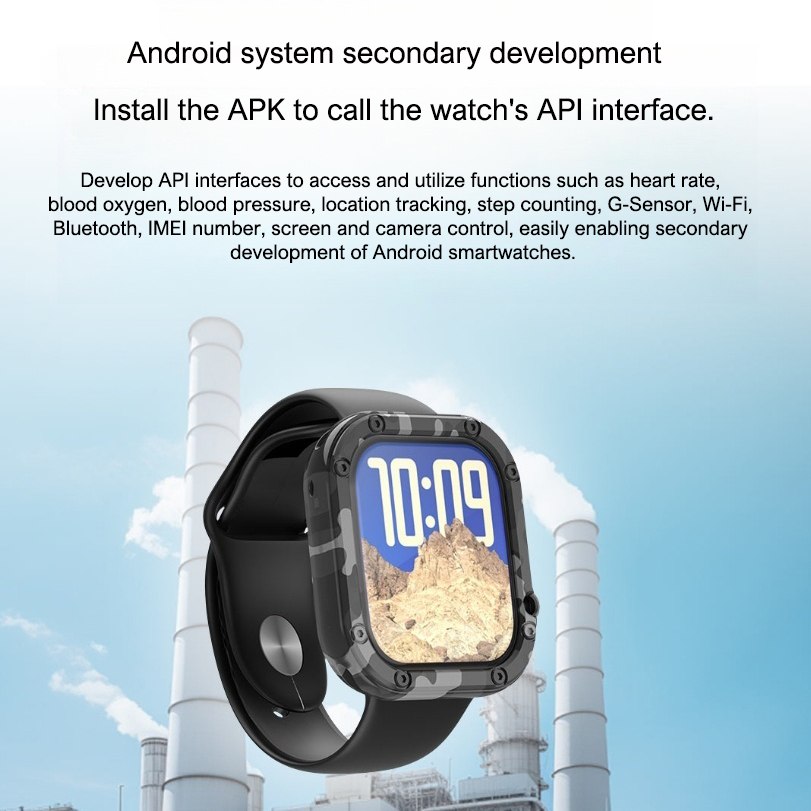 Media features: video chat, face recognition, QR code scanning, watch face style switching, weather, network connectivity: WLAN, hotspot and network sharing, VPN, etc.; languages: English, Spanish, Arabic, Russian, and more; OTG support. Anti-fall automatic alarm SOS, positioning system backend, 24 blood oxygen monitoring, and open API interfaces for obtaining heart rate, blood pressure, blood oxygen, location and pedometer data, G-sensor, Wi-Fi, Bluetooth, IMEI number, screen and camera control, and other interfaces, making it easy to implement secondary development for Android smartwatches.